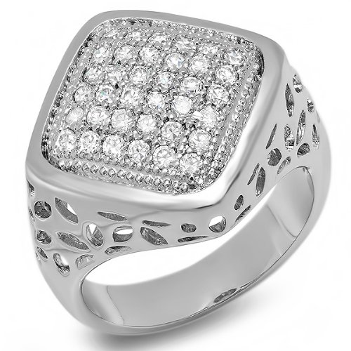 Platinum Plated Kite Shaped Round White CZ Cubic Zirconia Mens Flashy Hip Hop Iced Pinky Ring (0.78 inch wide) Review