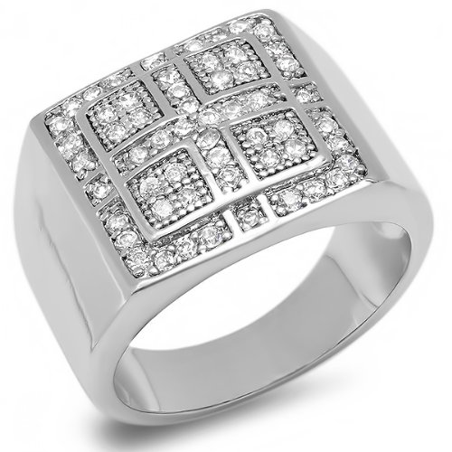 Platinum Plated Square Shaped Round White CZ Cubic Zirconia Mens Flashy Hip Hop Iced Pinky Ring (0.60 inch wide) Review