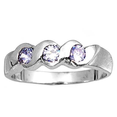 Sterling Silver Baby Ring and Pinky Ring - Dainty Silver Twist with Three Lavender CZ Crystals and June Birthstone Ring (size 1) in Heart-Shaped Black Velvet Gift Box Review